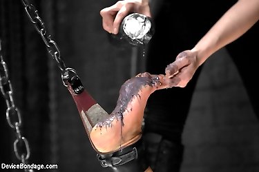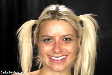 Beautiful, blonde haired and blue eyed Anikka returns to Device for more. In the first scene, Anikka is bound tightly in the black canvas straight jacket and suspended in a hogtie position with leather wrapped around her ankles. To keep this bitch under submission, her knees are opened with the spiky sticks and her tolerances are tested with a heavy handed tazapper session. In the second scene, she is suspended pile drive style with leather straps. Sticky pads are attached to her tender ass and she is made to cum from spanking alone! In the final scene, Anikka is spread eagle with metal pipe. A metal collar keeps her head up and a fucking machine mercilessly pounds her cunt into oblivion.